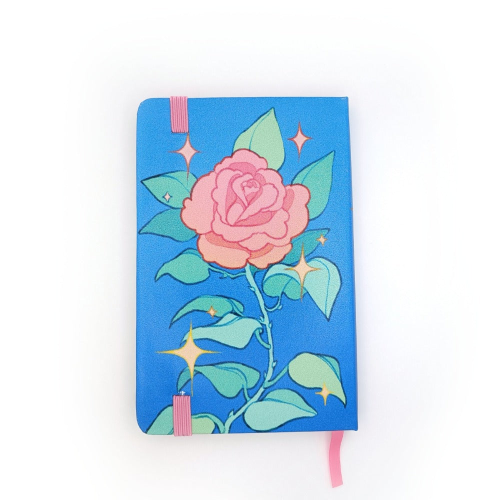 Liven up your note taking with this cute Rose Notebook! The sparkly pink rose design against a bright blue sky is reminiscent of 90's shoujo anime and manga, and lets you feel like a prince(ss) while journaling. 🌹✨